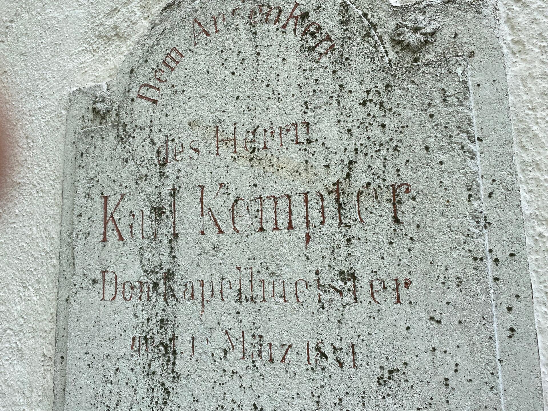 Die letzten Lebensjahre Kempters waren geprägt von körperlichen und seelischen Schicksalsschlägen. Er starb am 12.3.1871 im Alter von 52 Jahren und fand seine letzte Ruhestätte hier auf dem Hermanfriedhof.
