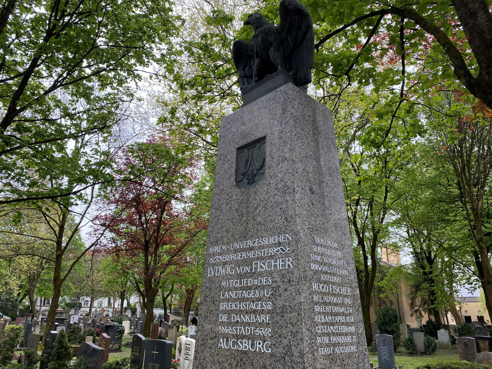 Direkt am Hauptweg ist die imposante Grabstätte eines ehem. Bürgermeisters der Stadt Augsburg zu finden: Ludwig von Fischer war von 1866 bis 1890 erster Bürgermeister der Stadt und hält mit 34 Jahren Amtszeit den Rekord in Augsburg.