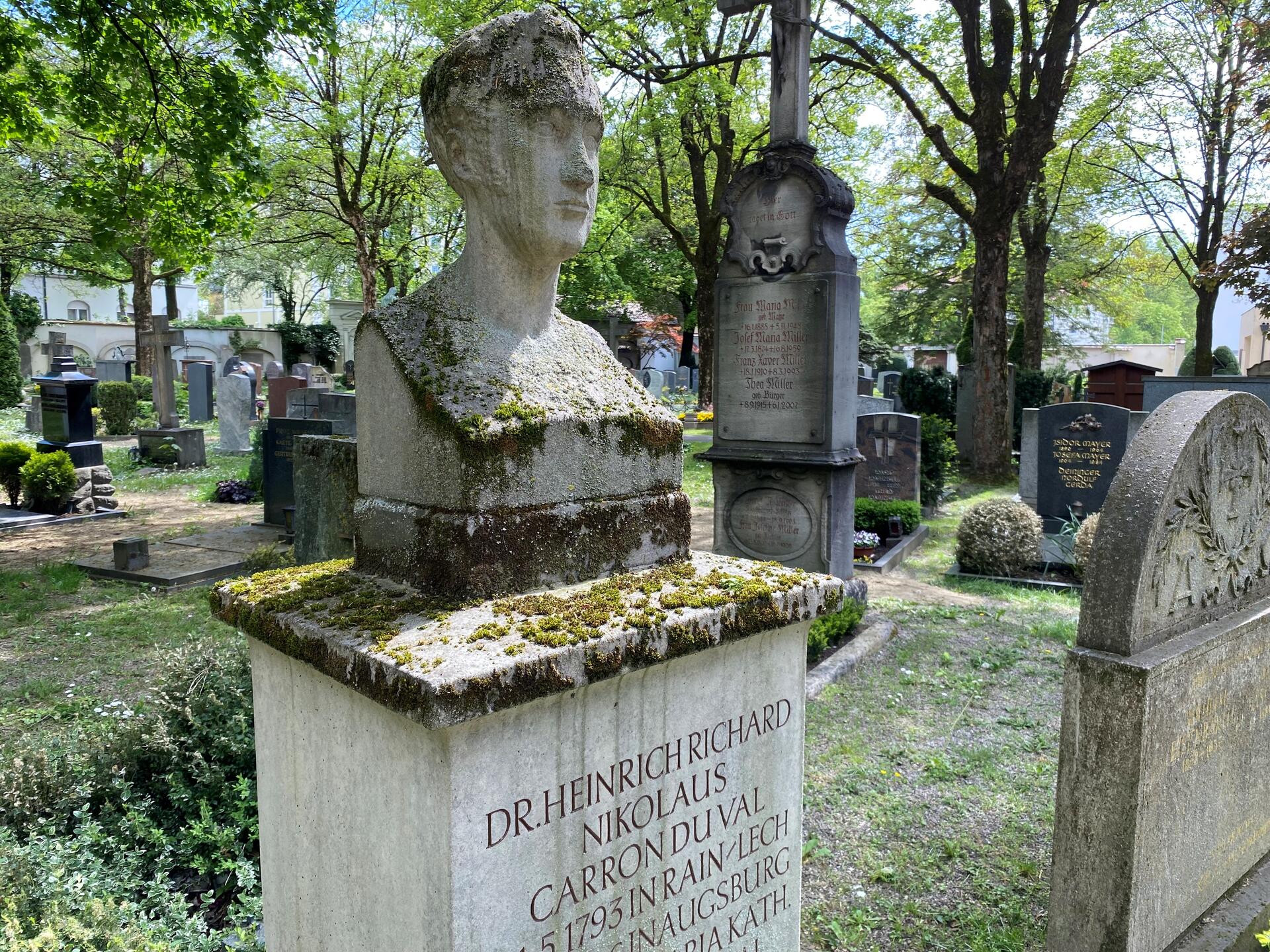 Richard Carron du Val lebte von 1793 bis 1846. Er wurde im Jahr 1835 zum ersten rechtskundigen Bürgermeister von Augsburg gewählt. In dieser Funktion setzte er sich stark für den Industriestandort Augsburg ein. So war es ihm ein großes Anliegen, den Bau der Bahnlinie Augsburg – München voranzutreiben.